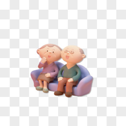 手绘卡通老人相互依偎形象元素