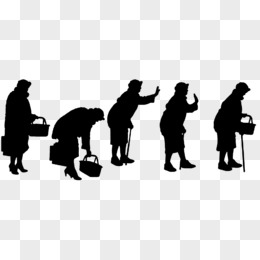 手绘卡通女儿陪伴年迈的母亲背影免抠素材