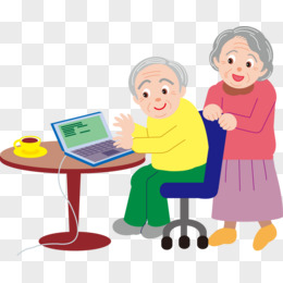 手绘老年夫妻幸福合照爷爷奶奶照片免抠元素