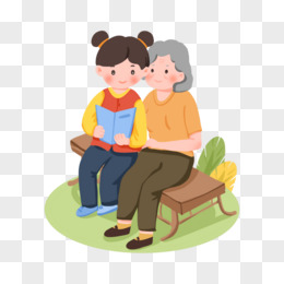 手绘卡通老爷爷老奶奶坐着喝茶插画元素
