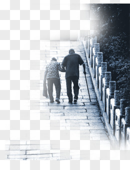 弥散风老人作伴登高背影免抠元素