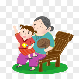 手绘卡通祖孙一家元素