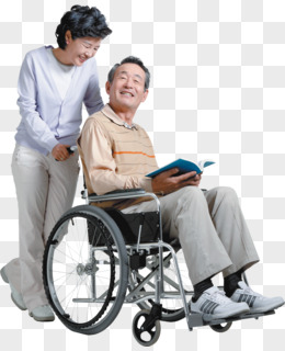 手绘扁平老人坐轮椅抱婴儿免抠元素