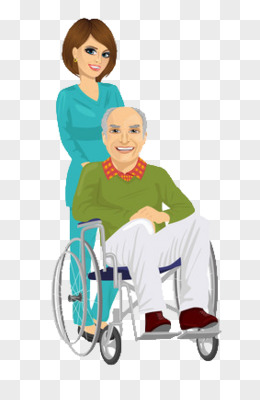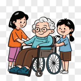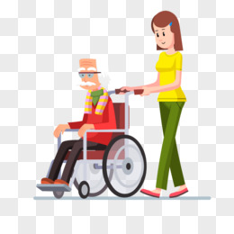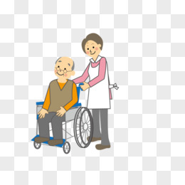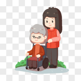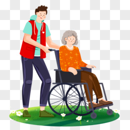 一组卡通帮助老年人助老服务套图之推轮椅元素