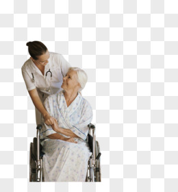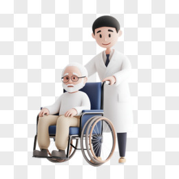 3D插画穿白大褂的医生推着坐轮椅的老人免抠元素