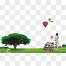 卡通手绘志愿者帮助老奶奶推轮椅场景元素