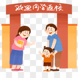 卡通家长送学生在校门口和老师打招呼免抠元素