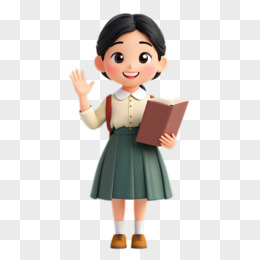 手绘插画风学生跟老师鞠躬问好免抠元素
