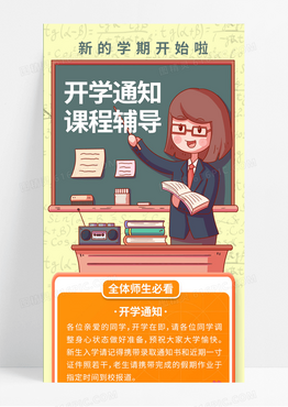 暖色系开学辅导开学通知课程辅导新生开学开学季手机长图