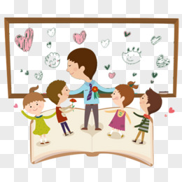 教师节快乐老师卡通手绘形象黑板教师拿书元素