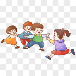 手绘卡通小朋友们玩老鹰捉小鸡游戏免抠素材