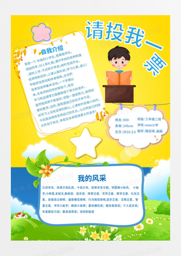 卡通人物儿童自我介绍班部竞选拉票海报