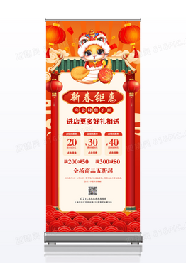 红色传统2025蛇年红色过年新年钜惠展架易拉宝