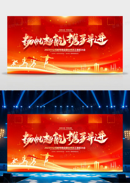 红金大气扬帆起航携手并进2023年会展板
