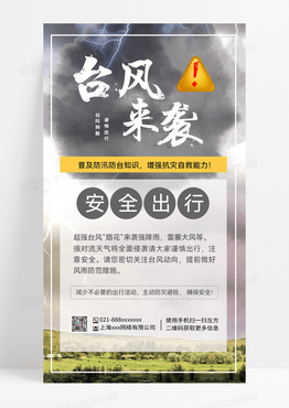 超强台风烟花来袭强降雨雷暴大风等蓝色简约台风来袭温馨提示台风ui手机海报