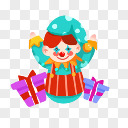 卡通创意搞怪小丑和礼物盒元素