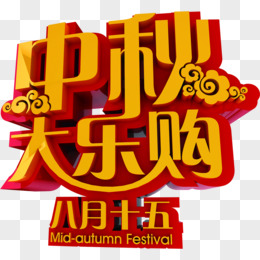 中秋大乐购黄色立体字