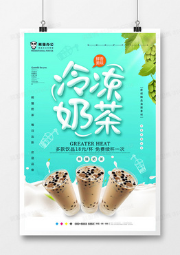 小清新冷冻奶茶饮品海报设计