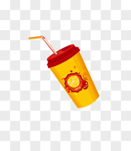 卡通手绘创意小老鼠喝橙汁冷饮素材