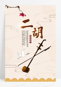 一组手绘中式国潮风传统乐器套图之二胡免抠元素