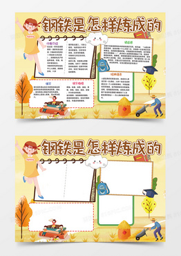 橙色卡通钢铁是怎么炼成的小报手抄报