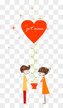 手绘情侣恋爱为爱欢呼场景免抠元素