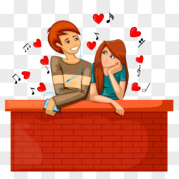 恩爱情侣坐一起弹琴看书手绘插画元素
