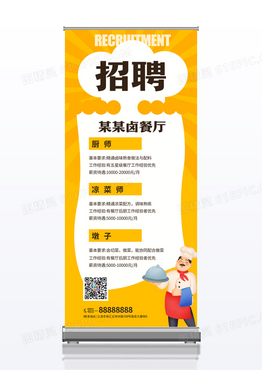 橙色卤菜店招聘就等你来招营业员厨师美食招聘凉菜师展架