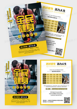 体育全民健身活力人生量身定做黄色大气健身宣传单