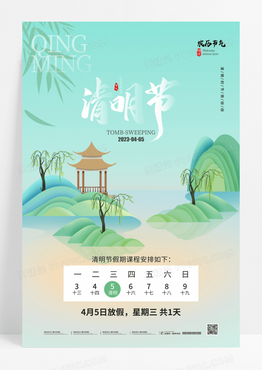 手绘国潮金线青山绿水凉亭大雁景观元素