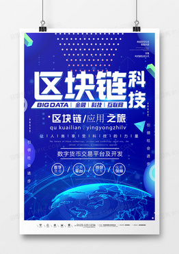 蓝色简约创意区块链海报设计