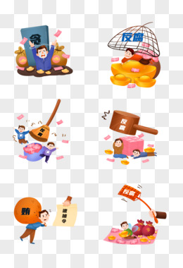 一组手绘卡通反腐倡廉套图合集免抠元素