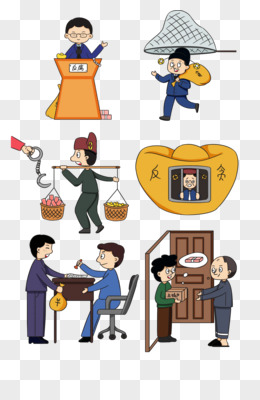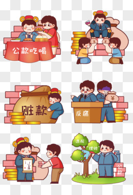 一组手绘描边风格创意反腐倡廉宣传图合集素材