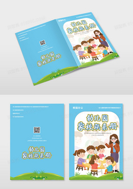 蓝色背景创意卡通风格幼儿园家校联系册设计画册封面