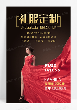 红色奢华礼服定制海报