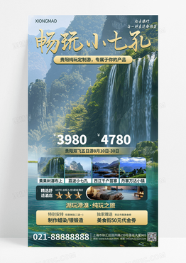 绿色简约贵州旅游畅玩小七孔景点促销宣传海报