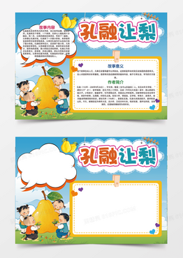 孔融让梨成语故事教育意义故事内容卡通简约手抄报