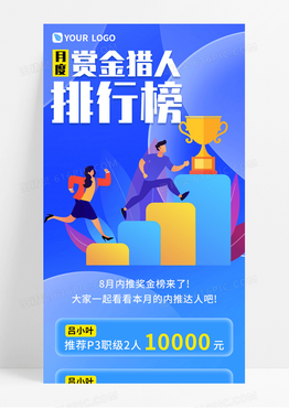 蓝色手绘赏金猎人月度排行榜宣传长图