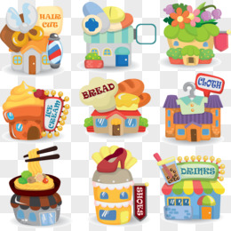 一组手绘卡通发型店里做头发套图合集系列六素材