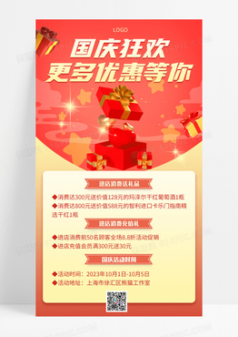 活动促销红色礼盒3d简约国庆节活动促销手机宣传海报
