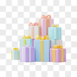 3D圣诞节装饰小元素两颗圣诞树和礼盒免抠元素