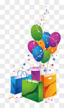 卡通四个幼儿园小朋友拿着气球和礼盒免抠元素
