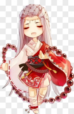 卡通立绘玩佛珠女孩