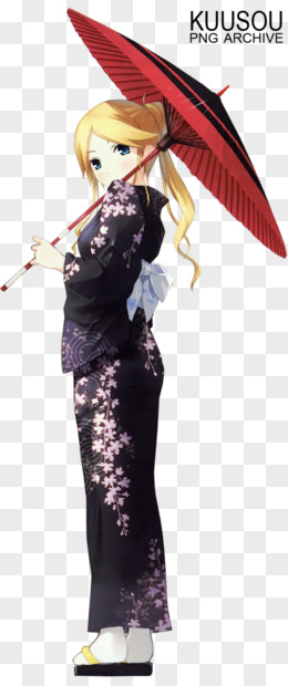 卡通立绘红伞和服女孩