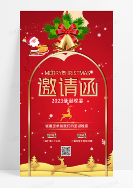 圣诞节邀请函圣诞铃红色简约海报