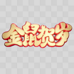 金鼠贺岁二零二零鼠年金鼠送宝黄金质感创意金色中国风立体艺术字
