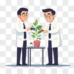 插画两个穿白大褂的生物学家在观察一株植物免抠元素
