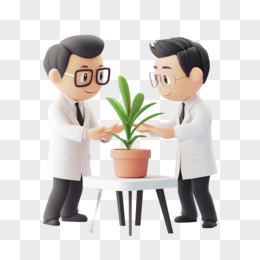 3D插画两个穿白大褂的生物学家在观察一株植物免抠元素