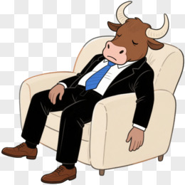 手绘卡通疲惫的穿着西服的牛头人躺在沙发上免抠元素