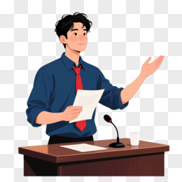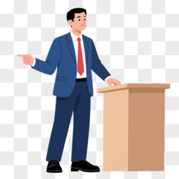 卡通穿蓝西服的男讲师站着讲桌旁免抠元素